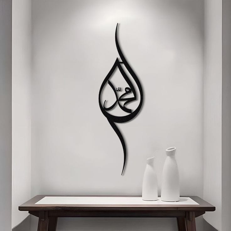 # Muhammad Calligraphy Wall Decor Transform your space with this exquisite Muhammad calligraphy wall decor, a masterpiece that blends Islamic artistry with contemporary interior design. Meticulously crafted using traditional calligraphic techniques, this piece captures the reverence and elegance of the Prophet's name in flowing Arabic script. Perfect for homes, offices, or prayer spaces, it serves as both a spiritual focal point and an artistic statement. The intricate detailing and balanced composition create visual depth, while the timeless aesthetic complements any décor style. Ideal for those seeking to infuse their environment with cultural significance and refined beauty.